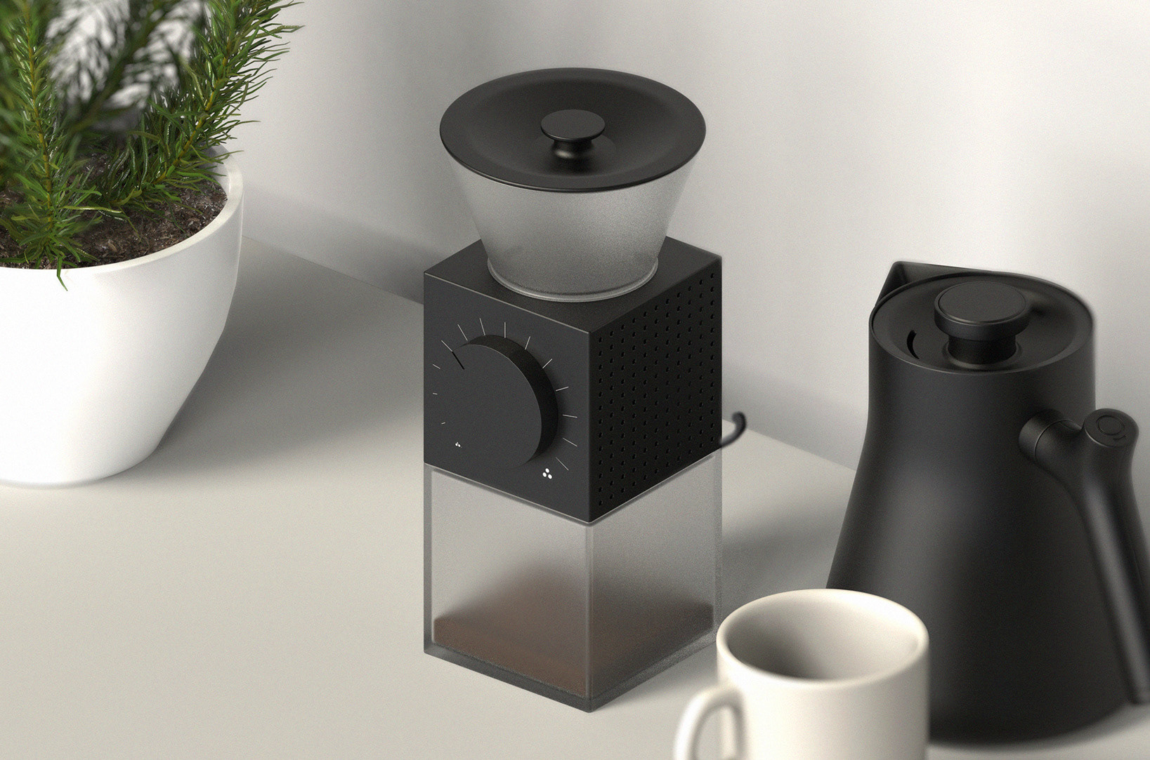 one-week mini project establishing Fellow's visual brand language, and designing a simple bean grinder with a smaller form factor to fill a spot in their product line